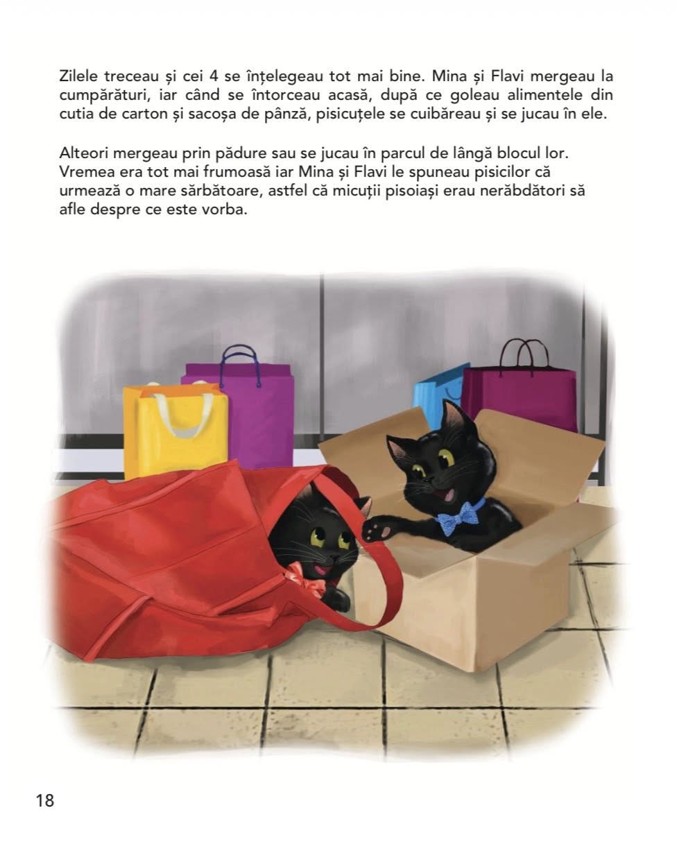 Paștele by Becky & Blacky – este povestea a doi pisoiași care au parte de aventura vieții lor mutându-se într-un oraș mare, precum Timișoara, după care au șansa să sărbătorească Sfintele Paști la satul natal al Minei (fata care i-a adoptat). Loc unde descoperă tradiții specifice satului, care se împletesc perfect cu mai noile obiceiuri, specifice orașului.